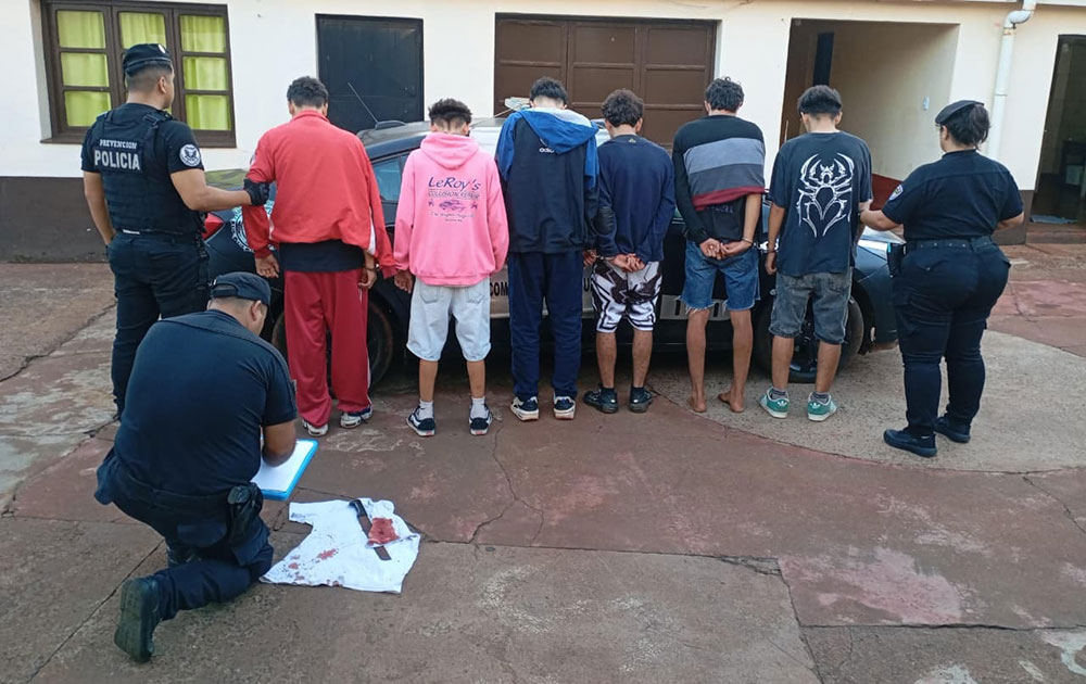 Un joven de 20 años resultó herido con un machete durante un violento episodio ocurrido en la madrugada de este sábado en una plaza de Oberá, donde siete menores de edad fueron demorados por la Policía como presuntos participantes de la agresión.
