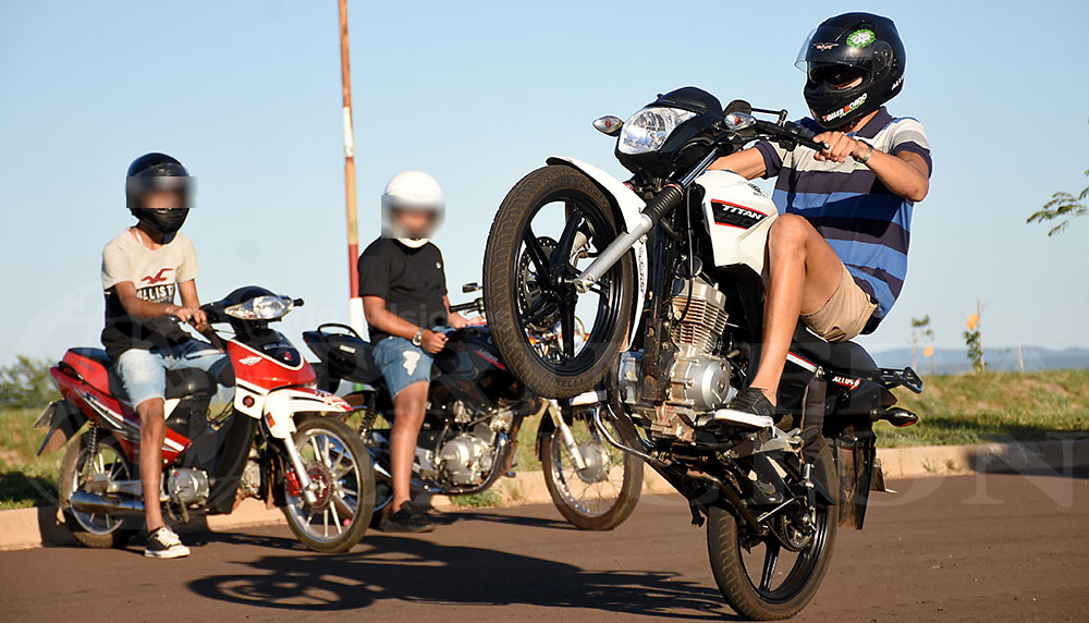 Motocicletas de todo tipo y cilindradas haciendo picadas, realizando “willys” o “stunt” (piruetas y acrobacias de alto riesgo arriba de la moto) sobre la avenida principal.