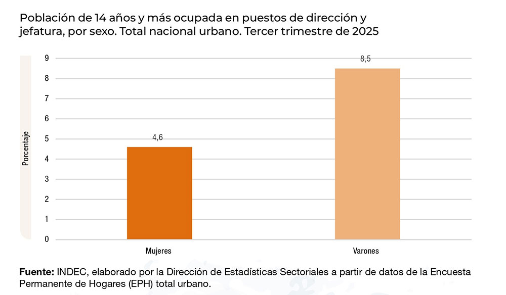 Aunque las mujeres obtienen la mayoría de los diplomas en el país, el informe advierte que eso no se traduce en mayores o mejores oportunidades laborales. Solamente el 4% de las egresadas logra alcanzar puestos de mando, frente al 8% de los varones.