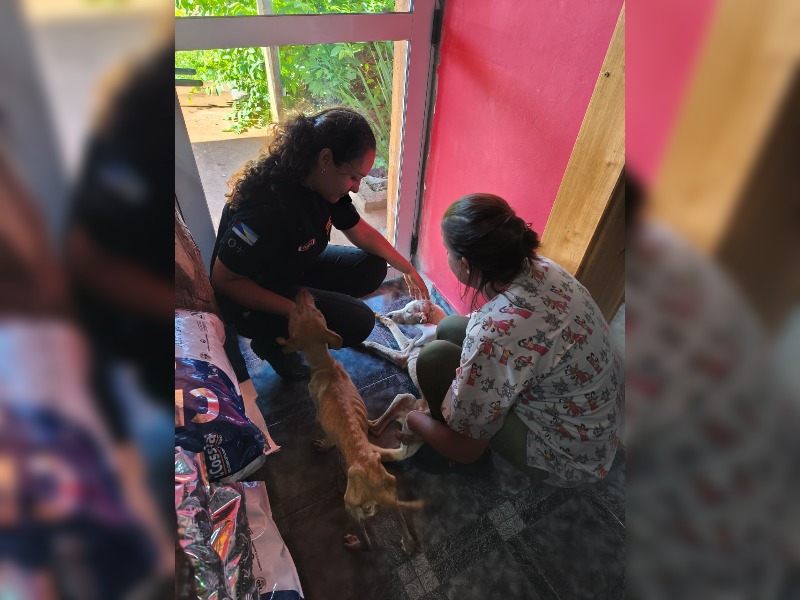 Según la evaluación veterinaria, dos de las perras presentaban desnutrición severa, presencia de parásitos y una condición corporal muy baja, reaccionando con desesperación al recibir alimento. En tanto, el perro macho se encontraba en un cuadro más delicado, con debilidad extrema, anemia y dificultades para movilizarse, por lo que quedó bajo atención profesional.