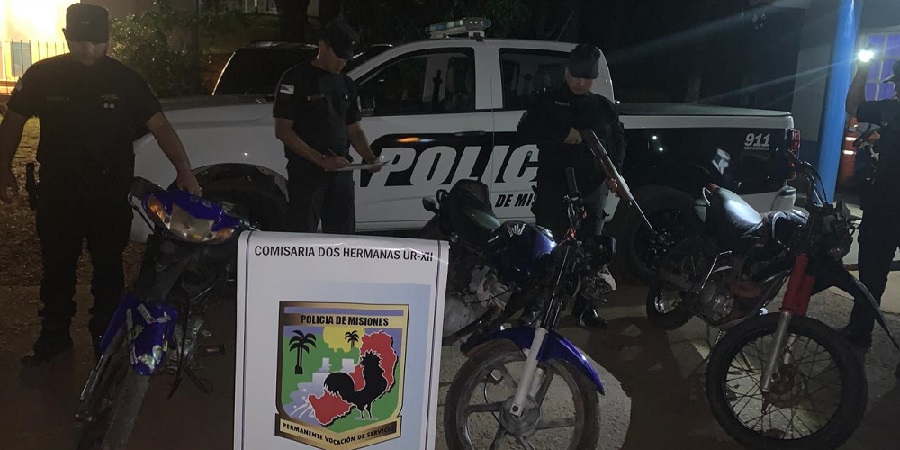 Este pasado fin de semana y en el marco de una investigación iniciada a partir de reiteradas maniobras temerarias y picadas clandestinas detectadas en rutas de la zona, la Comisaría de Dos Hermanas, secuestró tres motocicletas en un monte cercano al paraje Laguna Azul, que habrían sido sustraídas tanto en Brasil como en la provincia de Buenos Aires, y que estaban destinadas a su comercialización ilegal.