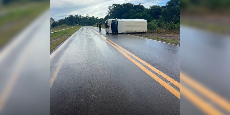 Se trató de una Toyota Hiace, al mando de un hombre de 35 años, que por motivos que aún no fueron determinados salió de su trayectoria y terminó volcando sobre uno de sus laterales en plena calzada.
