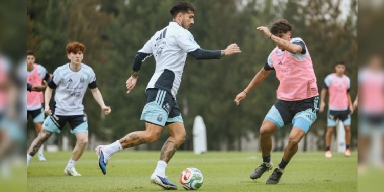 El entrenamiento incluyó minutos de fútbol para varios jugadores. La formación inicial fue: Rulli; Giay, Martínez Quarta, Otamendi, Tagliafico; Barco, Paredes, Exequiel Palacios; Prestianni, José López y Nico Paz. En la segunda mitad ingresaron: Perrone, Mastantuono, Simeone, Musso, Gabriel Rojas y Tomás Palacios.