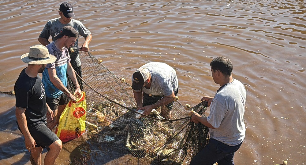 En ese marco, Sartori ponderó el contacto directo con los productores. “Acompañamos a una gran cantidad de vecinos que de manera solidaria se reúnen en esta época para realizar la cosecha de peces destinada a la venta”, expresó.