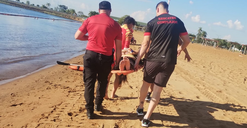 Este miércoles por la tarde, personal de la División Seguridad Costanera y de Rescates complejos de la Dirección de Bomberos de la Policía, junto a guardavidas que trabajan en el operativo especial de temporada en el balneario Municipal de El Brete, de Posadas, asistieron a una mujer que se descompensó en la playa y la trasladaron de urgencia para una rápida atención médica.