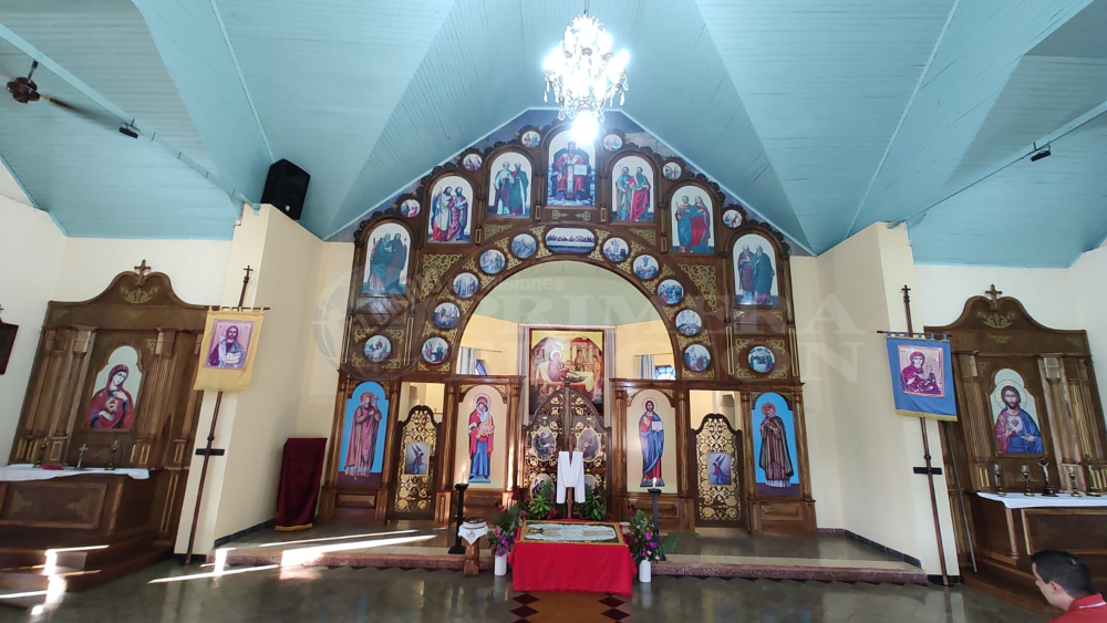 La construcción es, a su vez, una réplica de un templo ucraniano en Brasil. “Es prácticamente una réplica de la iglesia ucraniana de Urianópolis, gracias al padre Marcos Henco, quien trajo la idea y permitió que se construyera acá a semejanza de la de Brasil”, recordó.
