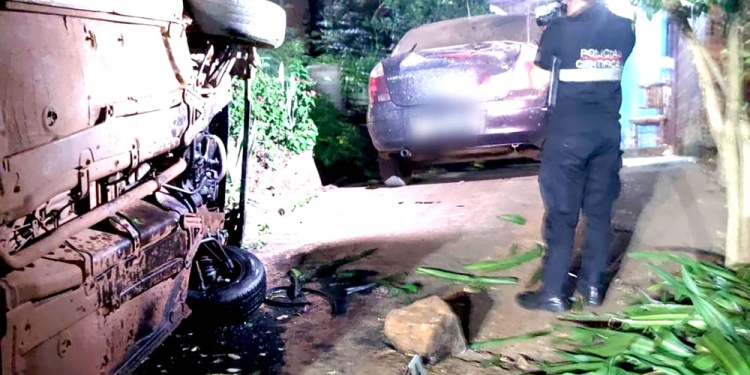 Un fuerte siniestro vial sorprendió a vecinos de Puerto Iguazú en la noche del viernes, cuando un vehículo fuera de control terminó su recorrido dentro de una vivienda, tras chocar contra un auto estacionado.
