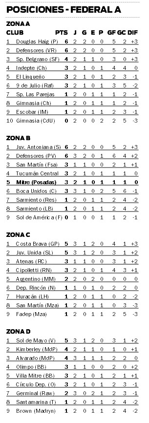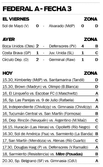 Por otro lado, por este mismo grupo, hoy también jugarán Tucumán Central vs. San Martín de Formosa (a las 16) y Sol de América de Formosa vs. Sarmiento de La Banda (16.30).