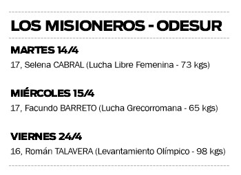 Restan horas para el inicio de los Juegos Sudamericanos de la Juventud Panamá 2026. En escena habrá 250 atletas que forman parte del semillero argentino y, entre ellos, tres misioneros. Se trata del pesista Román Talavera y los luchadores Selena Cabral y Facundo Barreto.