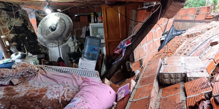 Un hecho que de milagro no terminó en fatalidad se registró este martes en el barrio Santa Rosa de San Pedro. Allí, a consecuencia de las abundantes precipitaciones, un muro cedió y se derrumbó sobre una vivienda.