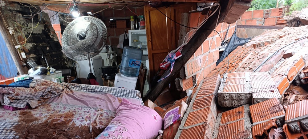 Un hecho que de milagro no terminó en fatalidad se registró este martes en el barrio Santa Rosa de San Pedro. Allí, a consecuencia de las abundantes precipitaciones, un muro cedió y se derrumbó sobre una vivienda.
