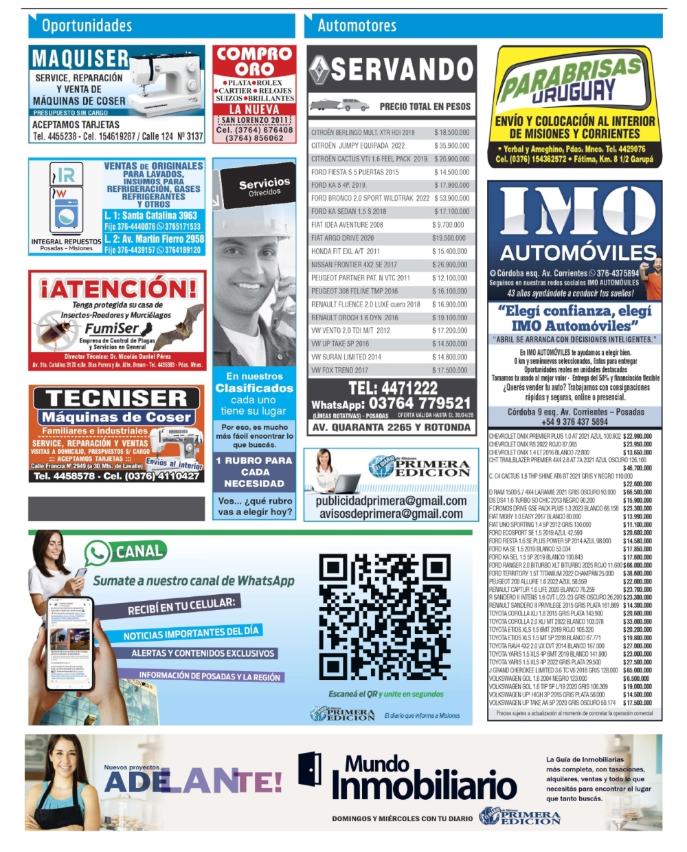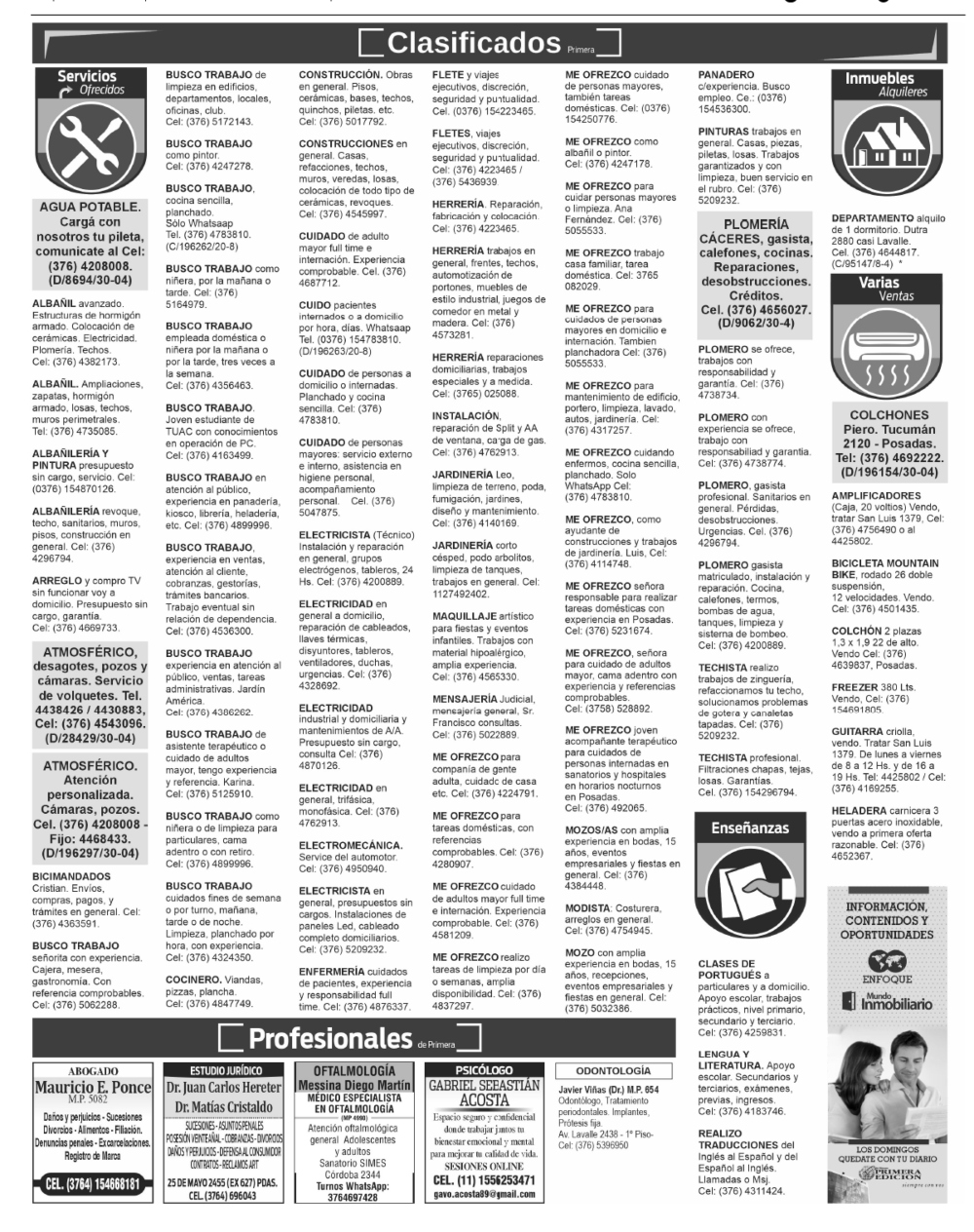 Clasificados del miércoles 8 de abril de 2026