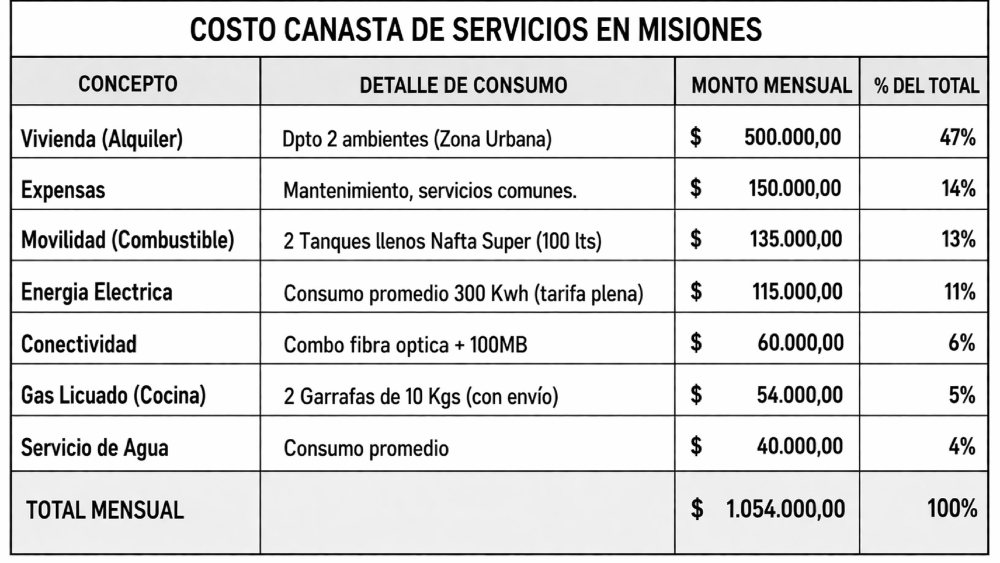 Vivir en Misiones bajo el nuevo esquema económico nacional se ha convertido en un desafío cada vez más difícil de sostener. Así lo evidencia un reciente informe elaborado por el contador y diputado provincial José Luis Pastori, que pone cifras concretas a una realidad que se percibe en la vida cotidiana: solo para cubrir servicios básicos y vivienda, sin contar alimentos, salud ni educación, un hogar necesita al menos $1.054.000 mensuales.