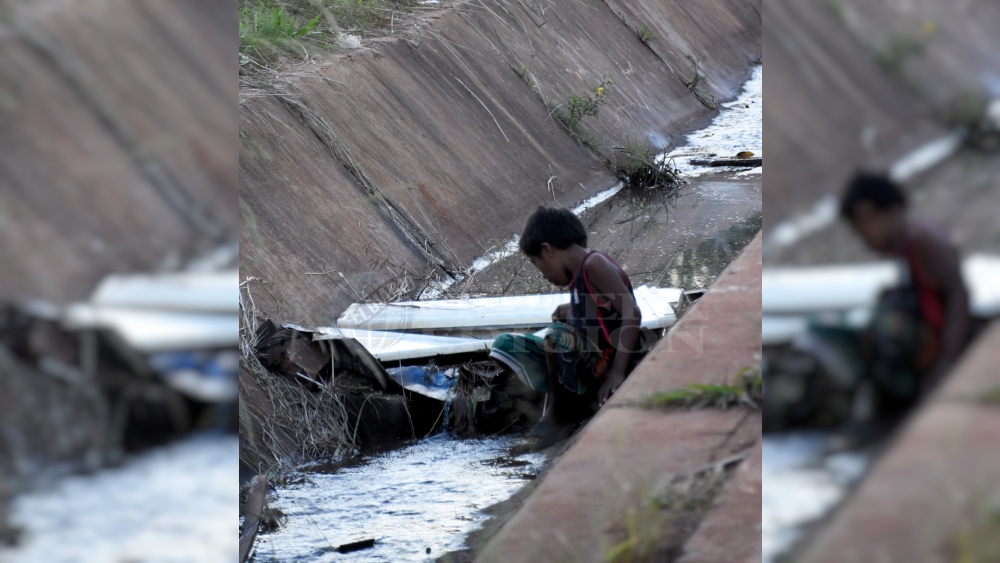 CONTAMINADA. Sin arroyos cerca, la comunidad recurre a un desagüe lindante para bañarse y lavar la ropa, lamentó el cacique Ramos.