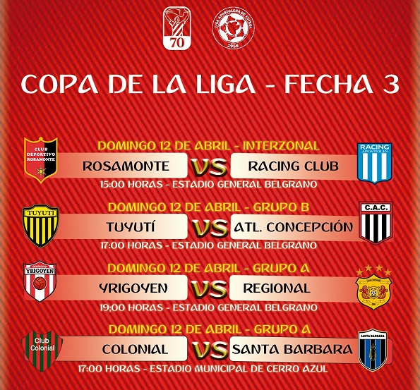 Este domingo se llevará a cabo la tercera fecha de la Copa de la Liga Apostoleña de Fútbol, destacándose el partido interzonal entre Rosamonte (foto) y Racing Club, en el mítico estadio General Manuel Belgrano, desde las 15 horas. Pero, no será el único ya que varios partidos más animarán los  grupos A y B.