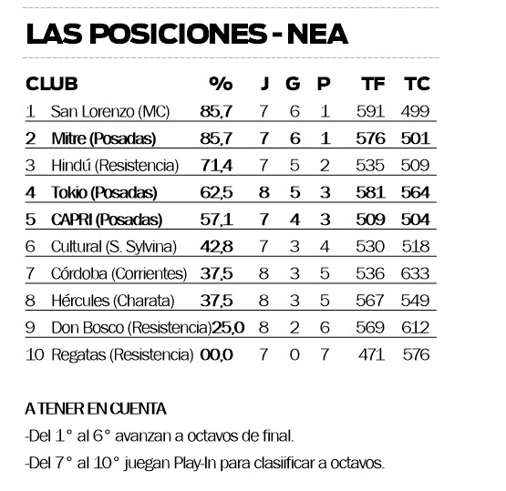 Su rival, por su parte, llega con tres victorias al hilo. Venció a Córdoba Basket de Corrientes por 78 a 70, luego se impuso como local ante Cultural de Santa Sylvina por 64 a 61 y, antes de viajar hacia Posadas, derrotó a CAPRI por 68 a 52.