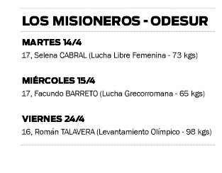 Luego, será el turno de Facundoen lucha grecorromana hasta 65 kilos, el miércoles 15; y en última instancia, la presencia misionera estará protagonizada por Román Talavera en levantamiento olímpico el próximo viernes 24 del corriente.