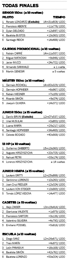 “Fue un buen debut, para mí es un orgullo correr con rivales de este nivel, con varios pilotos que ya tienen experiencia a nivel nacional”, sintetizó a EL DEPOR Abente, hijo del recordado Julio, piloto que supo ser campeón misionero tanto en pista como en karting, además de cosechar numerosas victorias en el ámbito nacional. Fran, además, viene de coronarse el año pasado en la Junior Himpa.