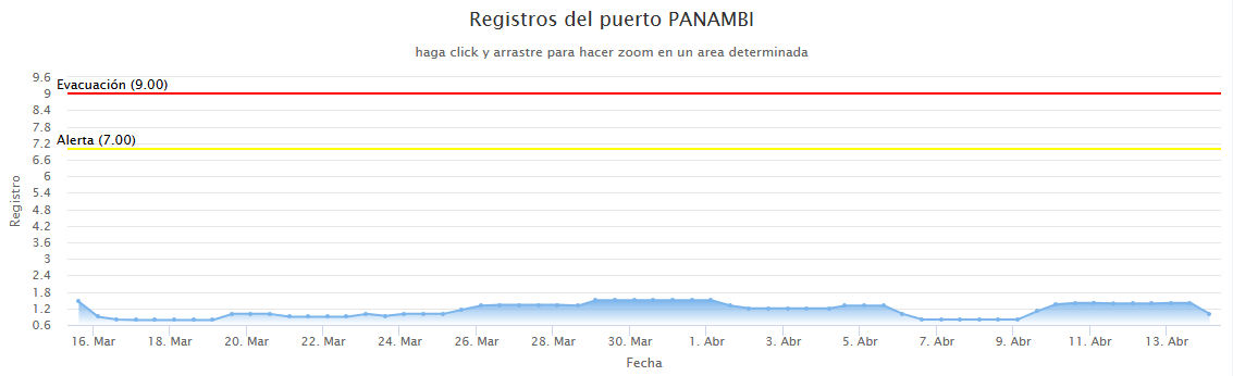 El caudal del río registra apenas una altura de 0,80 metros y sigue en bajante.
