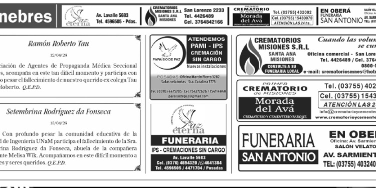Fúnebres del miércoles 15 de abril de 2026