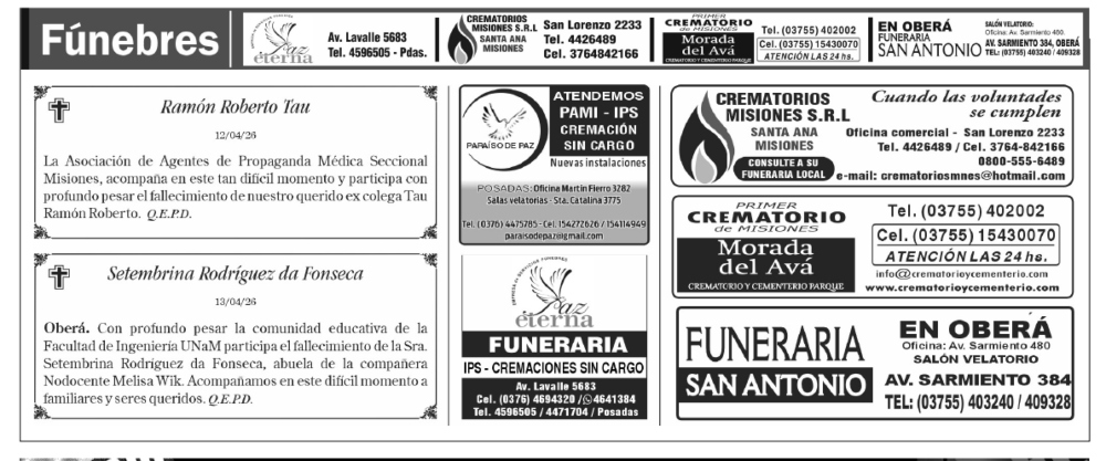 Fúnebres 15-04-2026