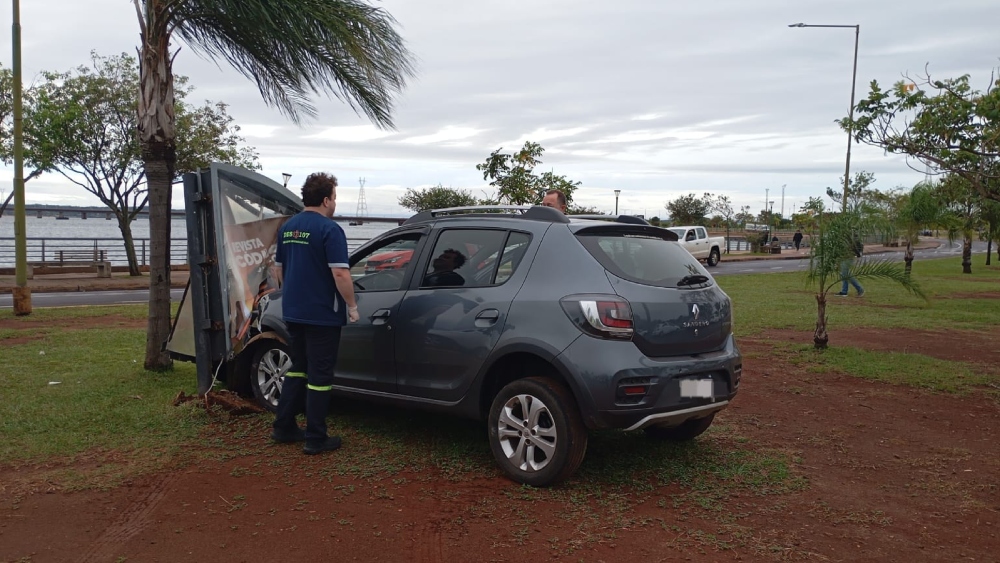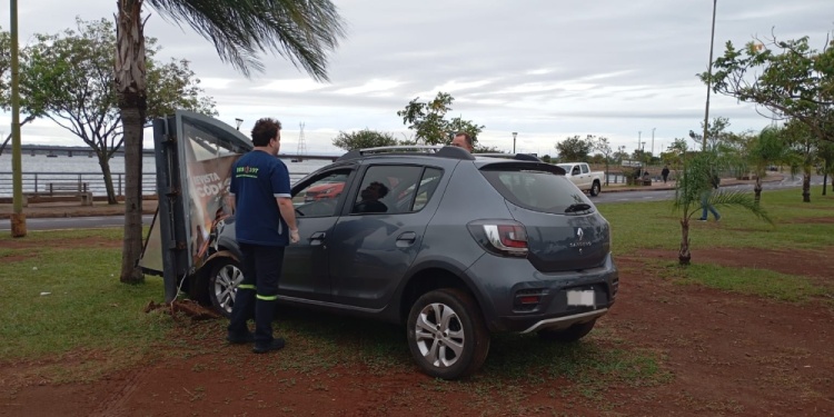 Un siniestro vial se registró este miércoles por la mañana en la avenida Costanera Este, a la altura de la rotonda de calle Catamarca, cuando una conductora perdió el control de su vehículo y terminó impactando contra un cartel publicitario.