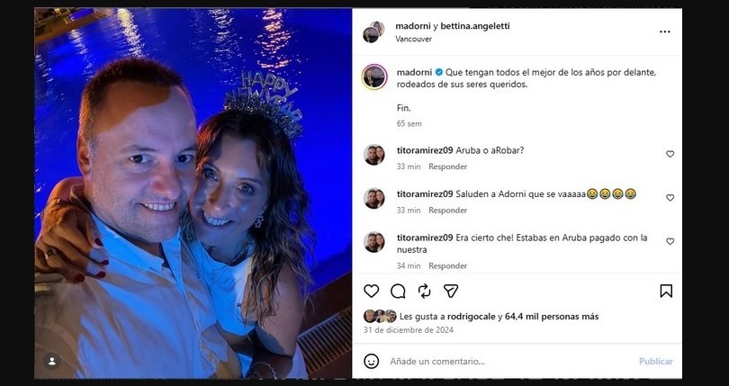 Cada pasaje salió 1450 dólares, lo que arrojaría un total de 5800 dólares entre toda la familia. Por estas horas, indicaron fuentes del caso, se busca esclarecer en qué hotel se quedó la familia Adorni y cuánto pagaron por el alojamiento.