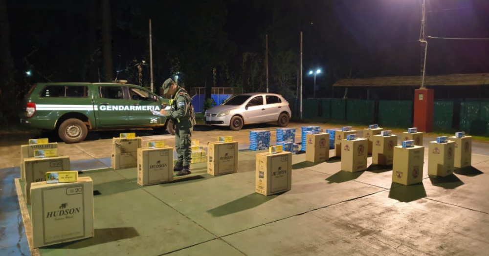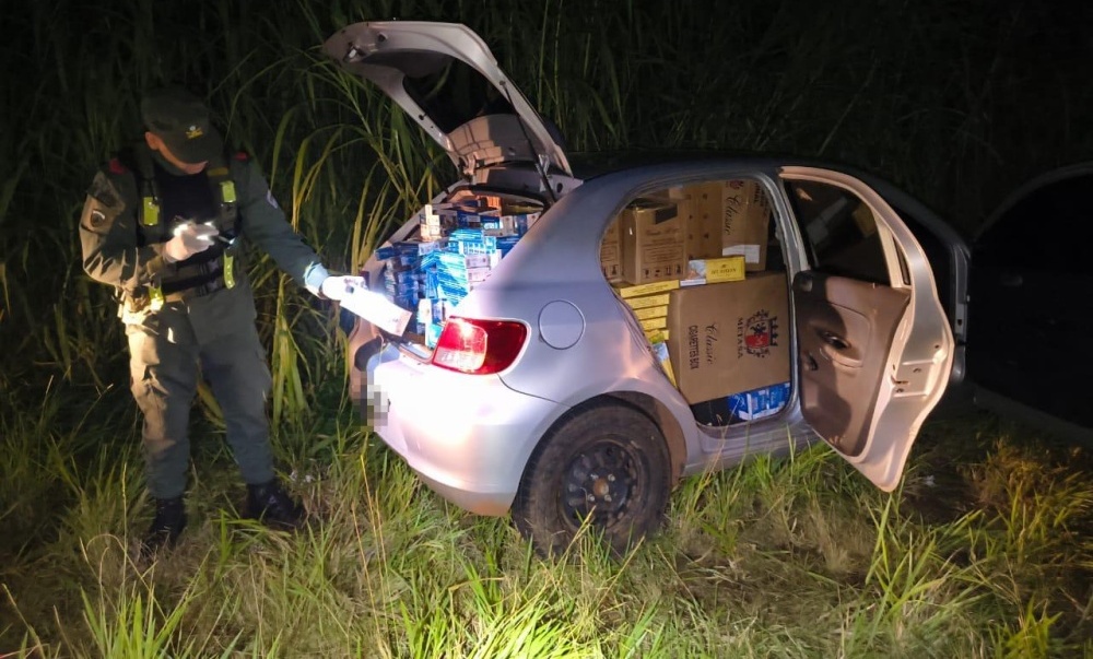 Ante la situación, los gendarmes iniciaron un seguimiento controlado que culminó con el hallazgo del automóvil abandonado, con la puerta del conductor abierta. En el interior del rodado se observaban a simple vista numerosos cartones de cigarrillos de distintas marcas.