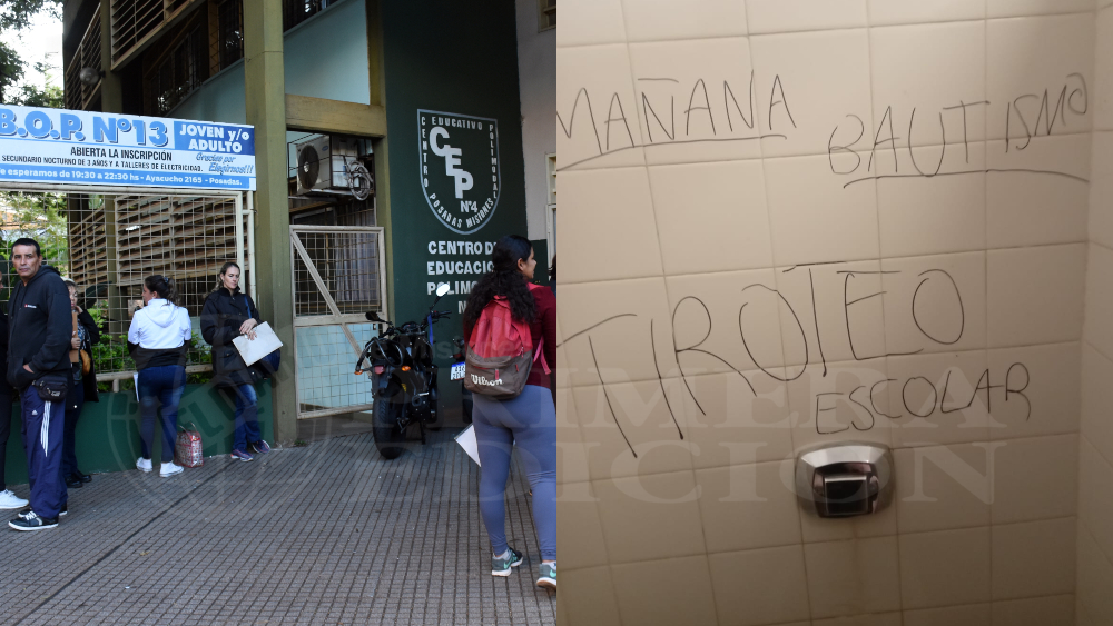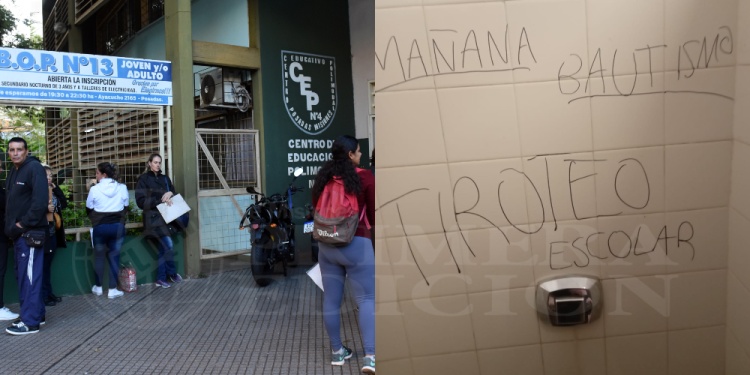Según pudo saber PRIMERA EDICIÓN, un administrativo del establecimiento, ubicado en la esquina de calles Entre Ríos y Ayacucho, en pleno centro posadeño, alertó al 911 sobre la aparición de una inscripción en el baño de varones que decía: “tiroteo para el día de mañana en el bautismo”.