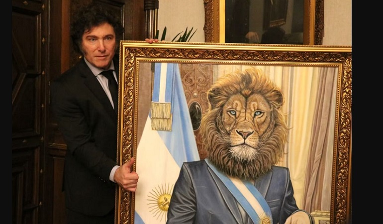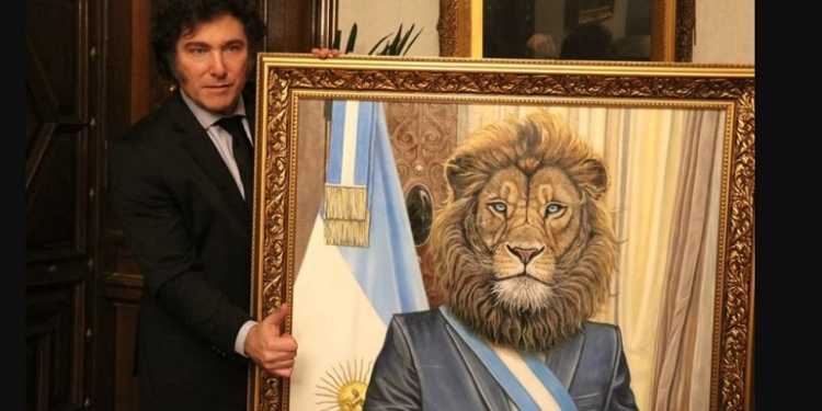 Con un rugido de enojo, el león (que también lleva la misma campera de cuero que utiliza el primer mandatario) cita una de las frases que decía el Presidente al comienzo de su campaña presidencial: “Yo no me metí acá para guiar corderos, me metí acá para despertar leones”.