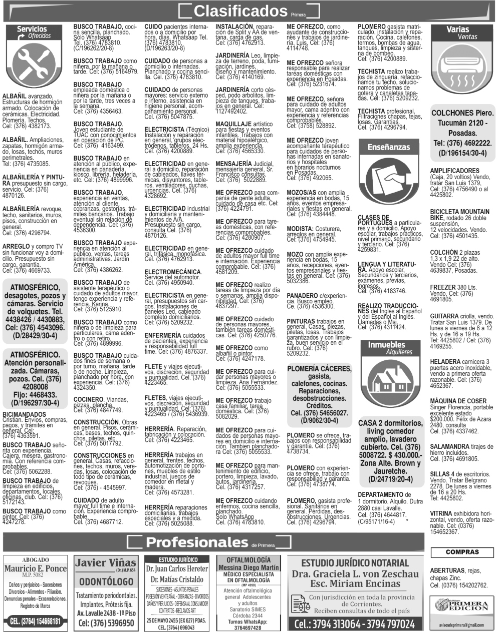 Clasificados del viernes 17 de abril de 2026