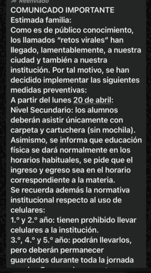 • “Esto no es un chiste”: advertencia por el reto viral en escuelas de Misiones