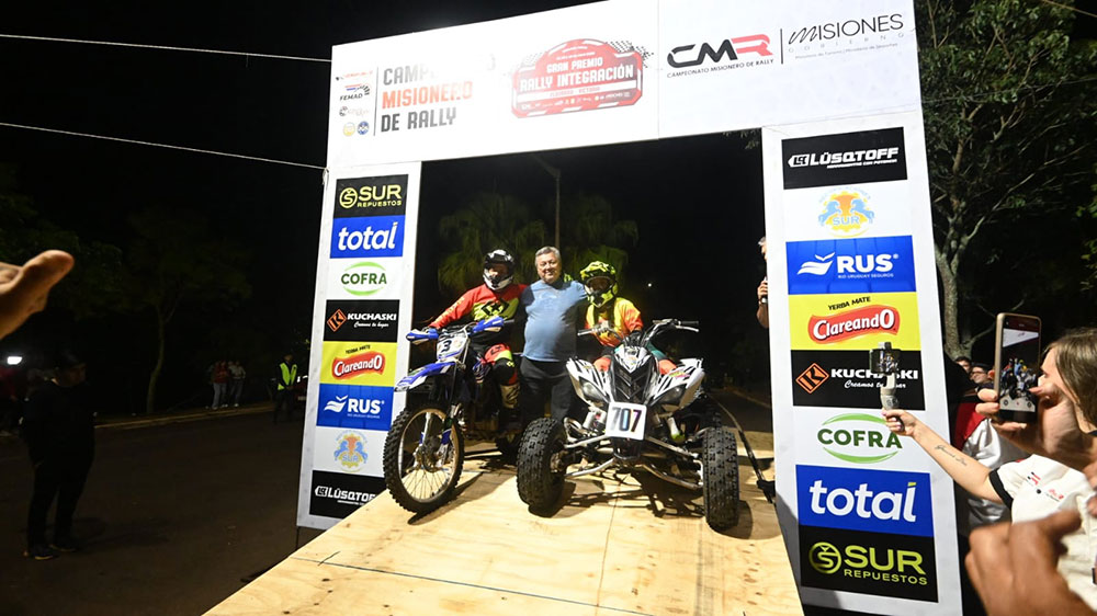 Uno de los momentos más emotivos de la noche fue la presentación de la familia Duarte. Cristian Duarte regresa a la competencia tras cinco años, Tatiana Duarte debutará en cuatriciclos y su padre, Víctor Duarte, fue reconocido como pionero del motociclismo en la zona norte, en una escena que se llevó la ovación del público.