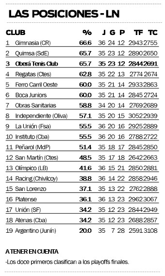 Con la clasificación a cuartos de final en el bolsillo, el Oberá Tenis Club cerrará esta noche su fase regular en la Liga Nacional de básquetbol, cuando reciba a un histórico como Atenas de Córdoba.