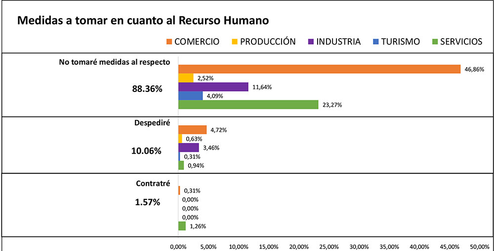 A este panorama se suma un dato que refleja cautela extrema: el 88% de las empresas decidió no tomar medidas en relación a su personal, es decir, no contratar ni despedir. Este comportamiento marca un freno en la generación de empleo y una estrategia defensiva ante la incertidumbre.