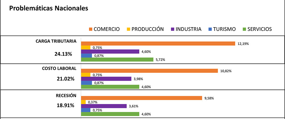 El informe también identifica a la recesión como una de las principales problemáticas vinculadas al contexto nacional, consolidando la percepción de que la economía atraviesa una etapa contractiva que impacta de lleno en la actividad pyme.
