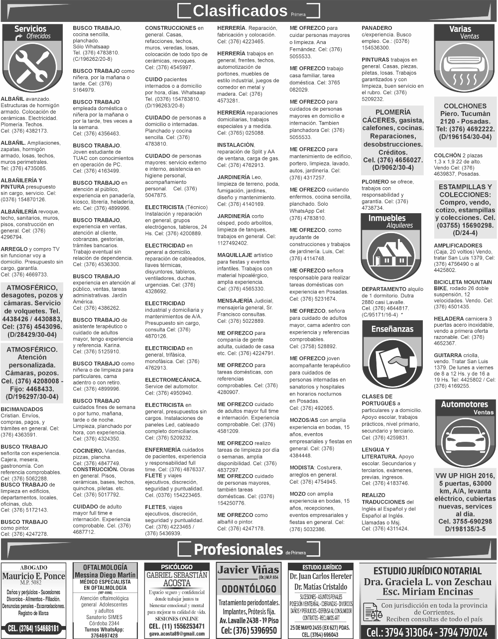 Clasificados del martes 21 de abril de 2026