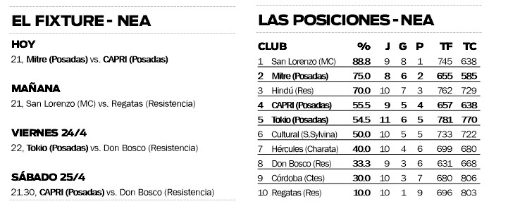 En cuanto a CAPRI, los de Eduardo Díaz llegan con el ánimo en alto luego de la victoria sobre Don Bosco en Resistencia, por 88-64. Para el Azzurro, ese triunfo significó el quinto festejo en el certamen, en el que también acumula cuatro derrotas.