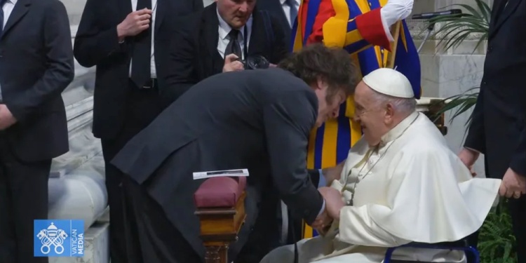 Milei había criticado en duros términos al papa Francisco antes de llegar a la Presidencia, pero tras asumir inició un camino de acercamiento que culminó el 12 de febrero de 2024 cuando concretaron una reunión extensa y amable en el Vaticano.