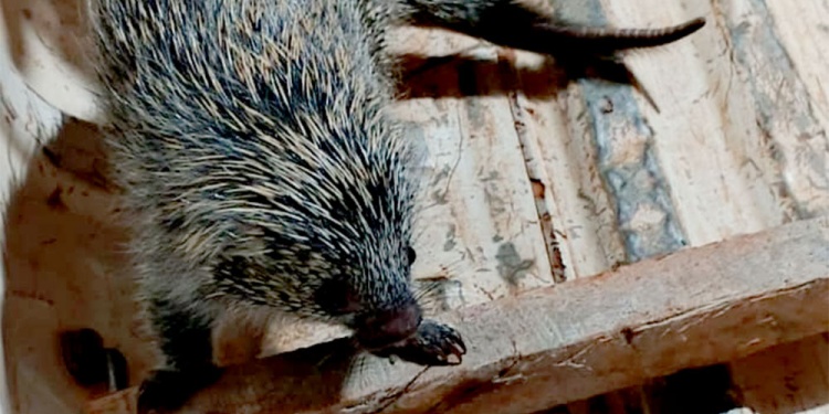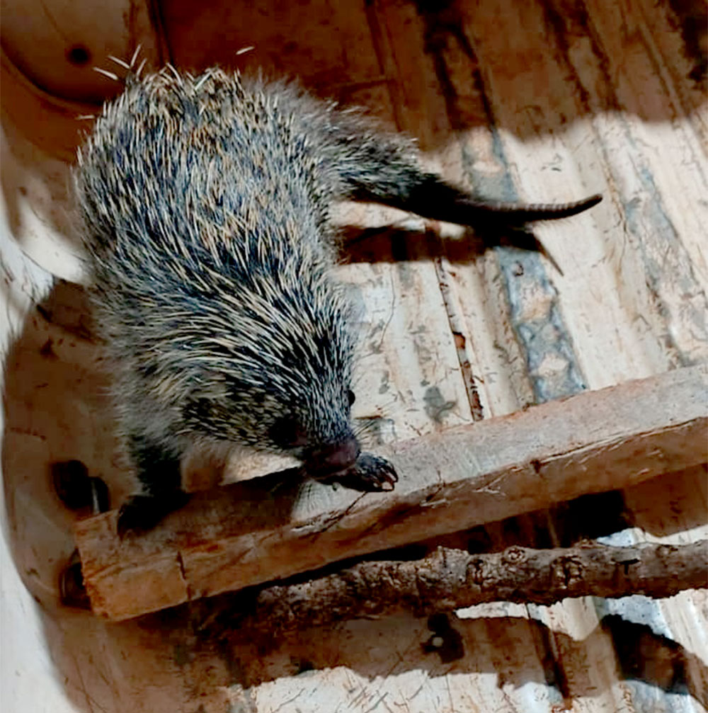 Un ejemplar de coendú (puercoespín), conocido como erizo o puercoespín, fue rescatado tras ser encontrado deambulando en la zona céntrica de la localidad, fuera de su hábitat natural.