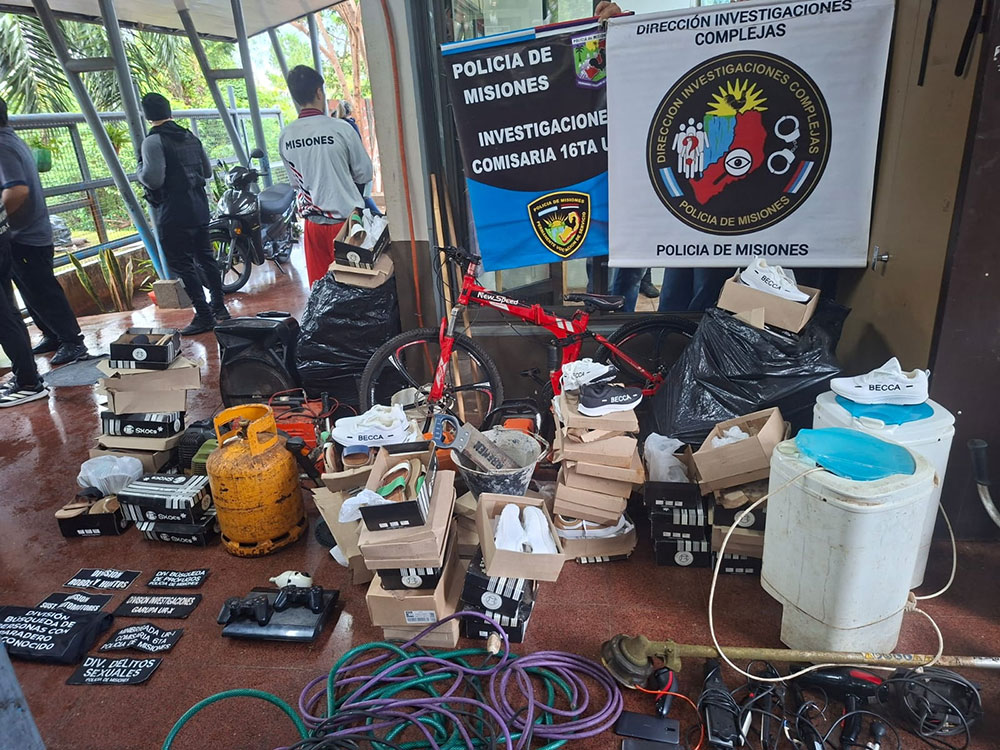 Según los primeros datos, se recuperó cerca de un centenar de elementos, entre los que se incluyen electrodomésticos, herramientas, dispositivos electrónicos, bicicletas, consolas de videojuegos, equipos de música e indumentaria. También se incautaron proyectiles calibre .22, que quedaron a disposición de la Justicia.