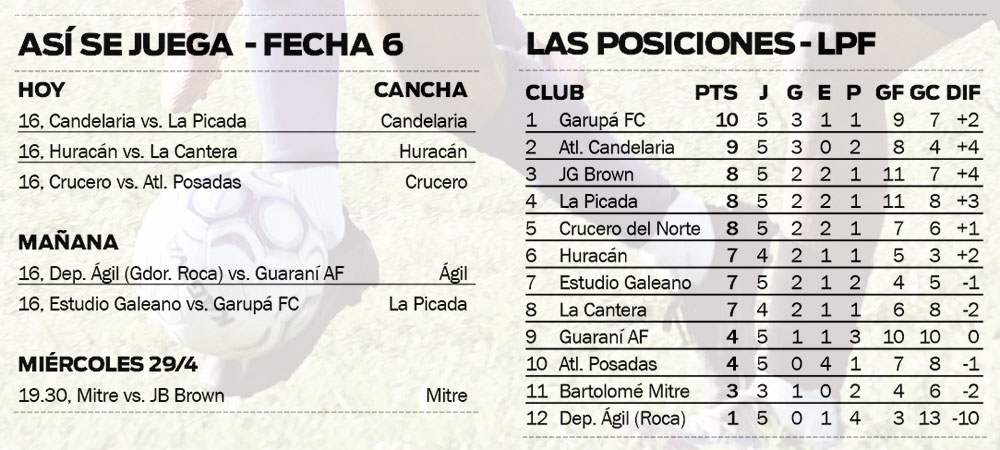 Siempre y cuando las condiciones climatológicas lo permitan, tres partidos abrirán este sábado la sexta fecha de la Súper Liga, la máxima categoría de la Liga Posadeña de Fútbol (LPF).