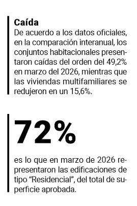 Dentro del uso residencial, las viviendas multifamiliares explicaron la mayor parte del movimiento, con el 60,6% de la superficie, seguidas por las viviendas unifamiliares con el 23,8% y los conjuntos habitacionales con el 15,7%.