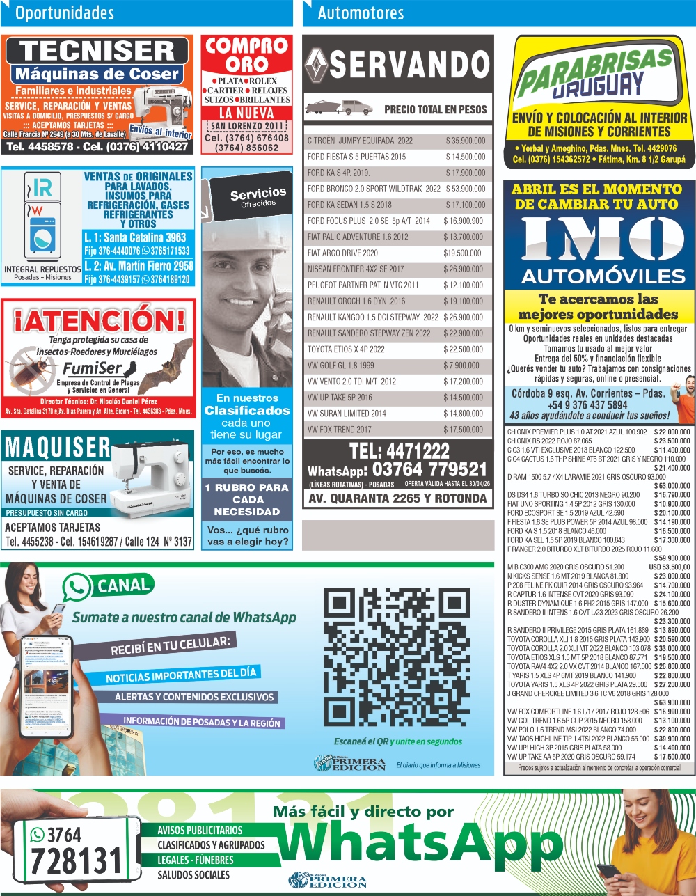 Clasificados del martes 28 de abril de 2026