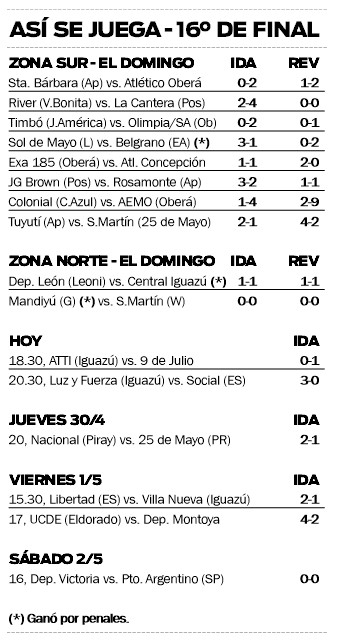 Más tarde, a las 20.30, en el mismo escenario, Luz y Fuerza será anfitrión de Social de El Soberbio. El Eléctrico tiene medio pie en la siguiente instancia tras el contundente 3-0 del primer duelo.