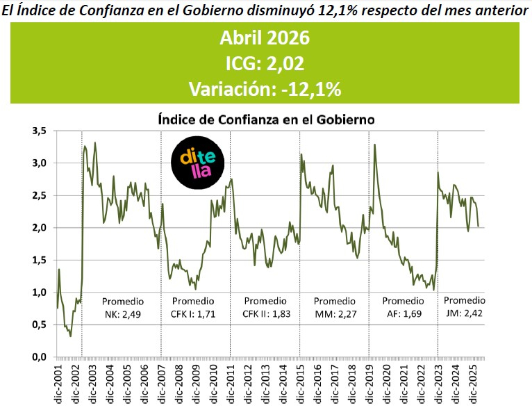 La caída de la confianza en el Gobierno ya se había expresado en marzo cuando bajó -2,30 puntos, un porcentaje que se suma a los retrocesos de febrero -0,6%, enero -2,8%, y diciembre -2,46.