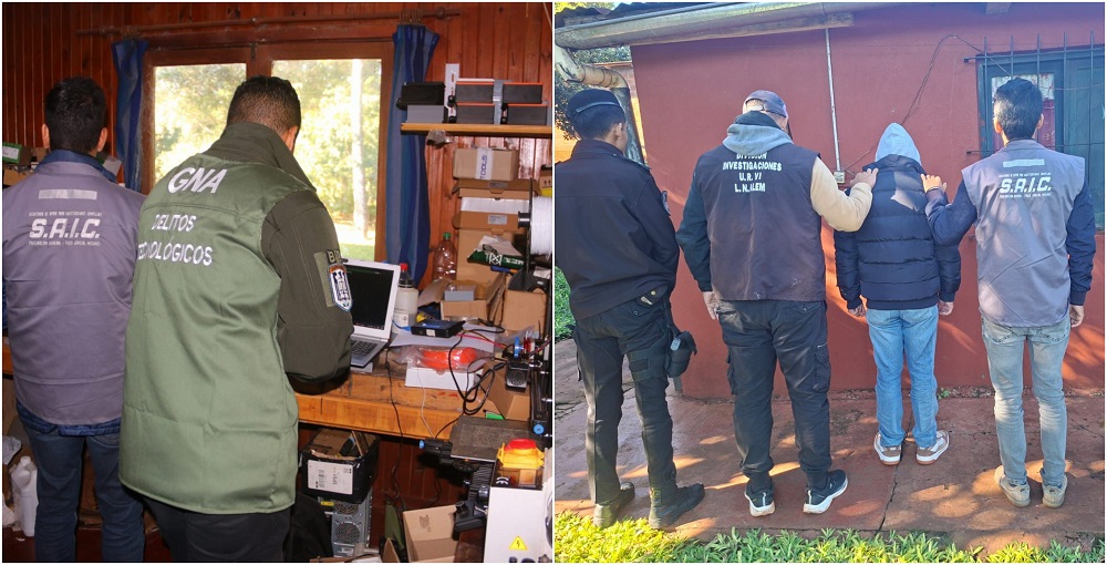 En Eldorado, los investigadores detuvieron a un hombre y secuestraron dispositivos electrónicos, entre ellos discos de almacenamiento, donde se detectó material compatible con abuso sexual infantil. En tanto, en Posadas se incautaron teléfonos celulares, aunque no se registraron personas detenidas.