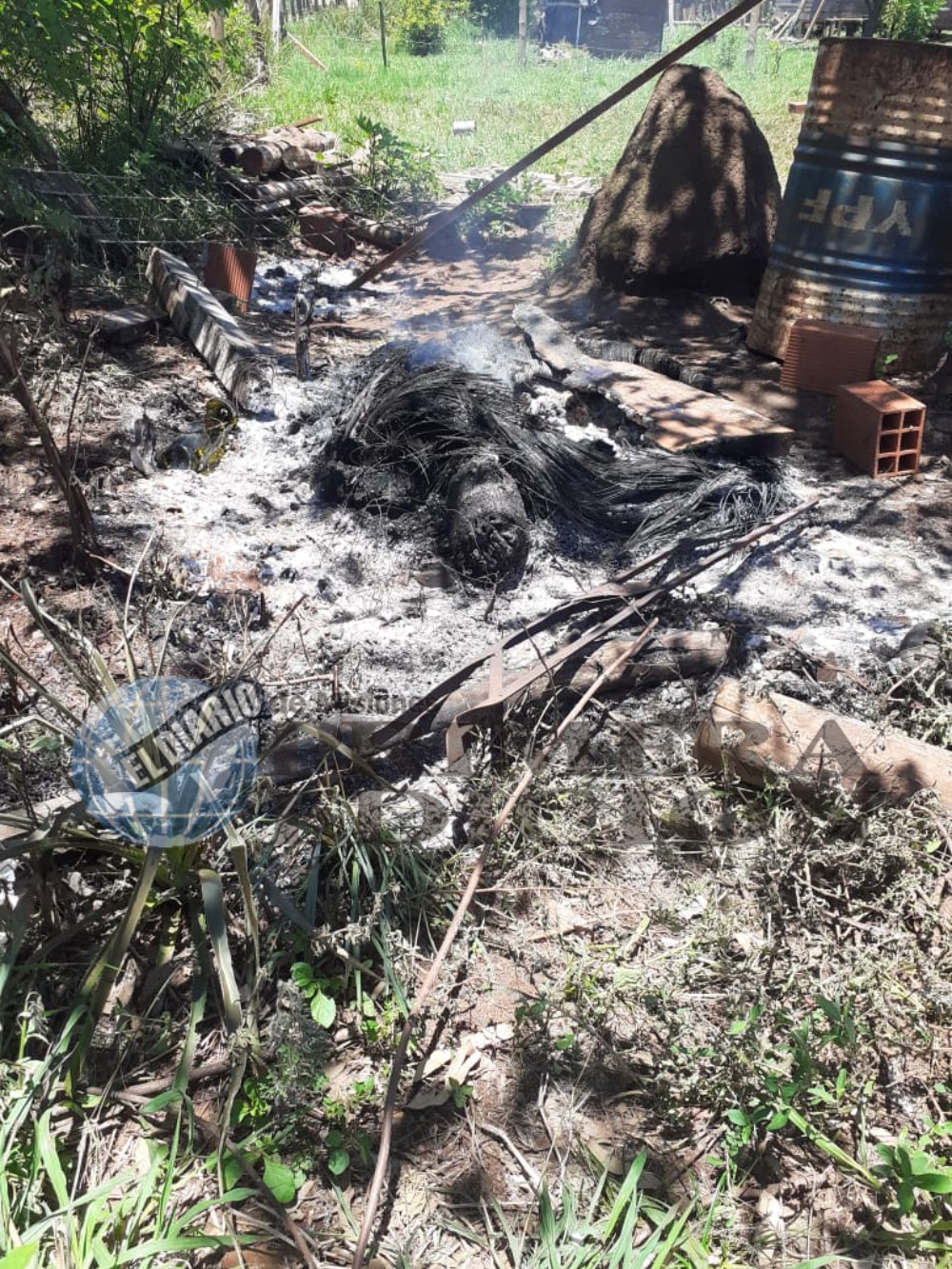 Al mirar más de cerca el humo y fuego se asustó al notar que ardía un cuerpo humano al que le reconocía la cabeza y los pies con ojotas puestas aún sin calcinarse.