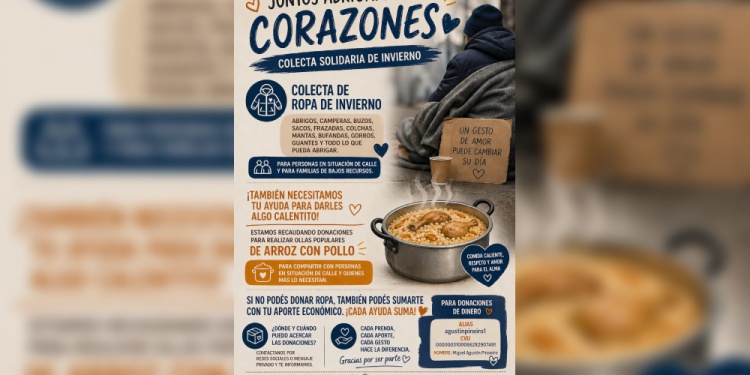 La campaña apunta a recolectar ropa de abrigo, alimentos y todo tipo de contribuciones que permitan acompañar a quienes atraviesan momentos difíciles. “Sabemos que hay noches frías, mesas vacías y corazones que necesitan compañía”, señaló Agustín a PRIMERA EDICIÓN, remarcando que cada aporte, por pequeño que parezca, puede marcar una diferencia significativa.