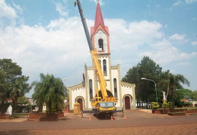 Desde hace una semana, los apostoleños ven una grúa en frente de "su" templo. Es que se encuentra en plena reforma la iglesia "San Pedro y San Pablo" en su pico máximo de altura, en su cúpula por dentro y por fuera de la misma, donde se hacen trabajas de pintura pero también refacciones de la torre.El párroco de la comunidad, Rubén González, dialogó con PRIMERA EDICIÓN sobre los trabajos realizados: "Por el trabajos que se están realizando en la torre de la iglesia. Son trabajos de pinturas y más profundos porque ya necesitaban un cambio, algunas partes estaban oxidadas".Además, explicó: “Es una empresa de Puerto Rico porque se necesitó una grúa para hacer ese trabajo ya no había maquinaria en la región para hacerlo, por suerte se pudo conseguir, llevará un tiempo pero quedará muy lindo ya que la comunidad se lo merece y desde la parroquia se trabaja para eso, son fondos de la administración después de las fiestas patronales, la colaboración y colecta de la comunidad que ayudan”.También comentó que ahora se tiene un grupo electrógeno que era imprescindible para la época de verano y un elemento sumamente importante para las celebraciones.